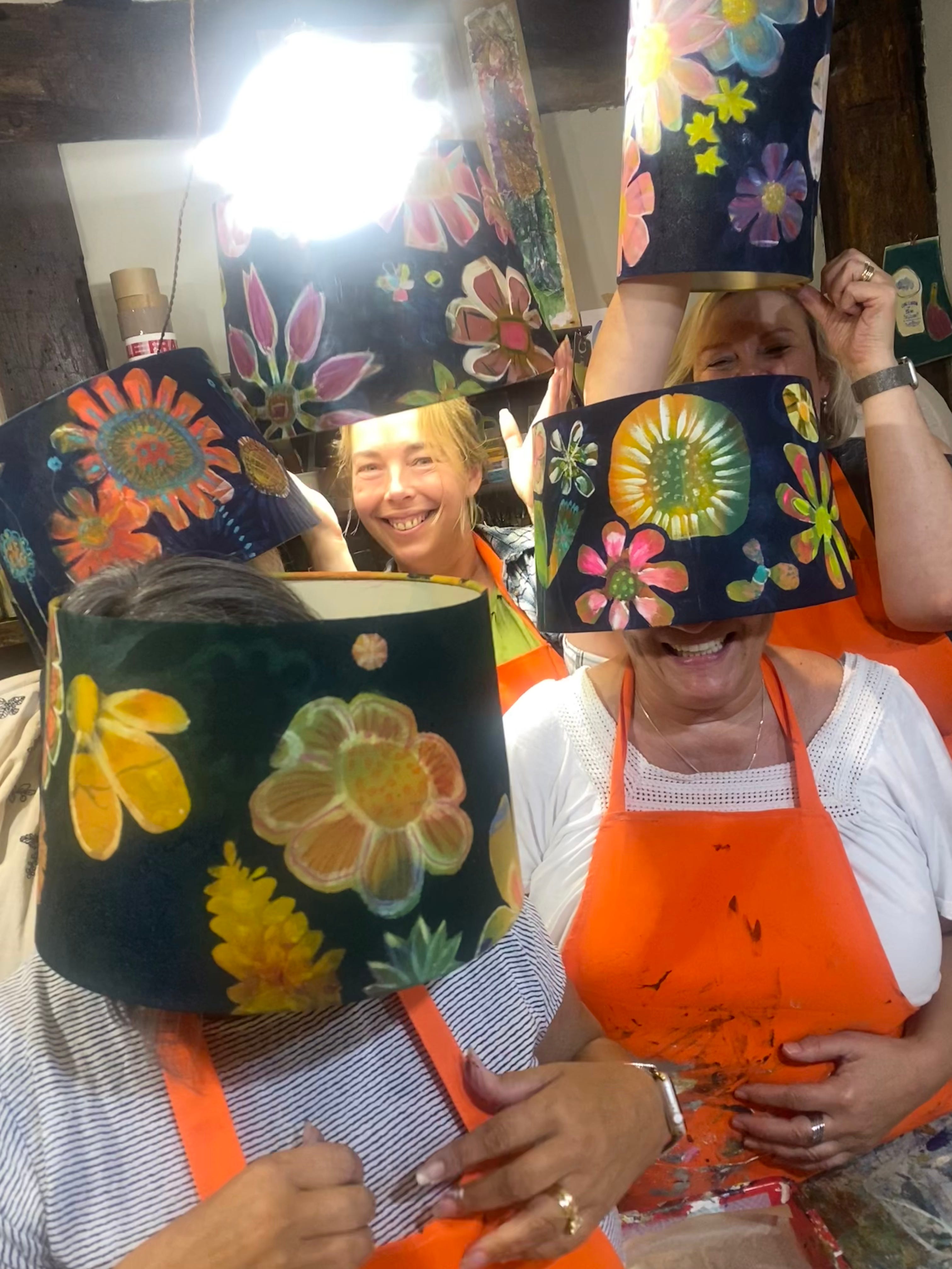 This is the Naughty Table, they wanted to paint lampshades, and it was an evening of belly laughter and pure joy!
