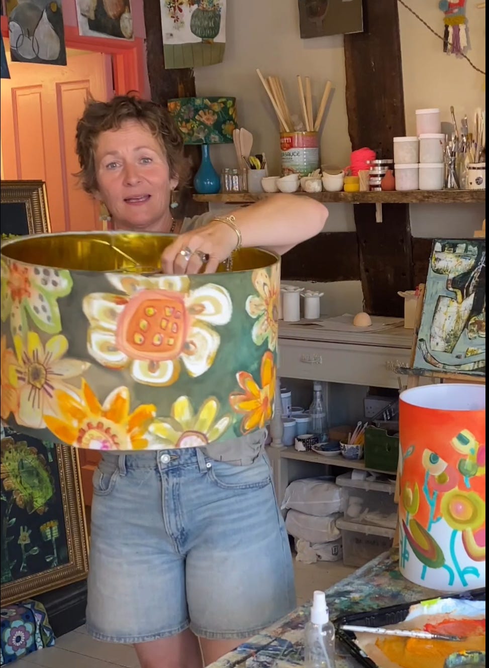 Interestingly, I’m attracting people (usually women) into the studio who have similar personality traits (not all, some are quite normal!) The window display of happy paintings, quirky pottery, blousey flowers, fallen petals, a bit of dog hair, and a few dead spiders seems to lure them in, maybe they feel an instant connection with the chaos! For whatever reason, they come in and our lives are mutually enriched.